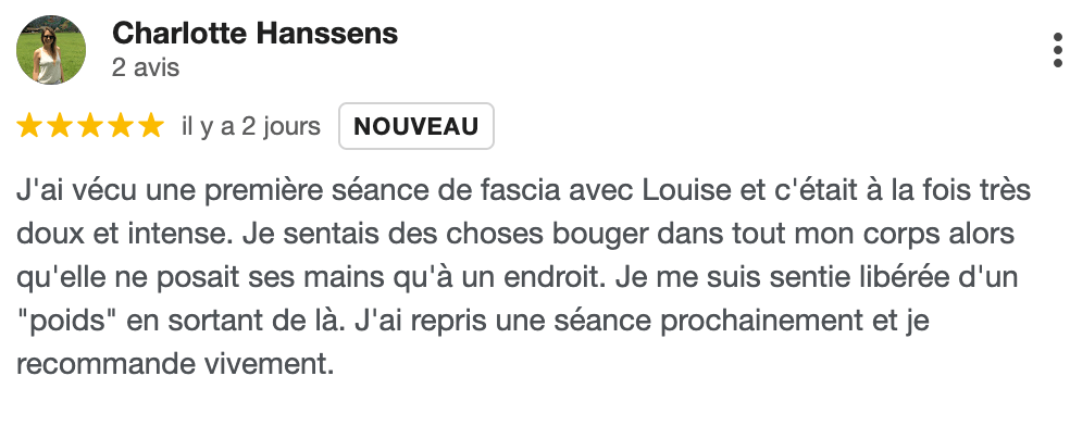 Ce sont des séances d’une heure, en fasciathérapie personnalisée,